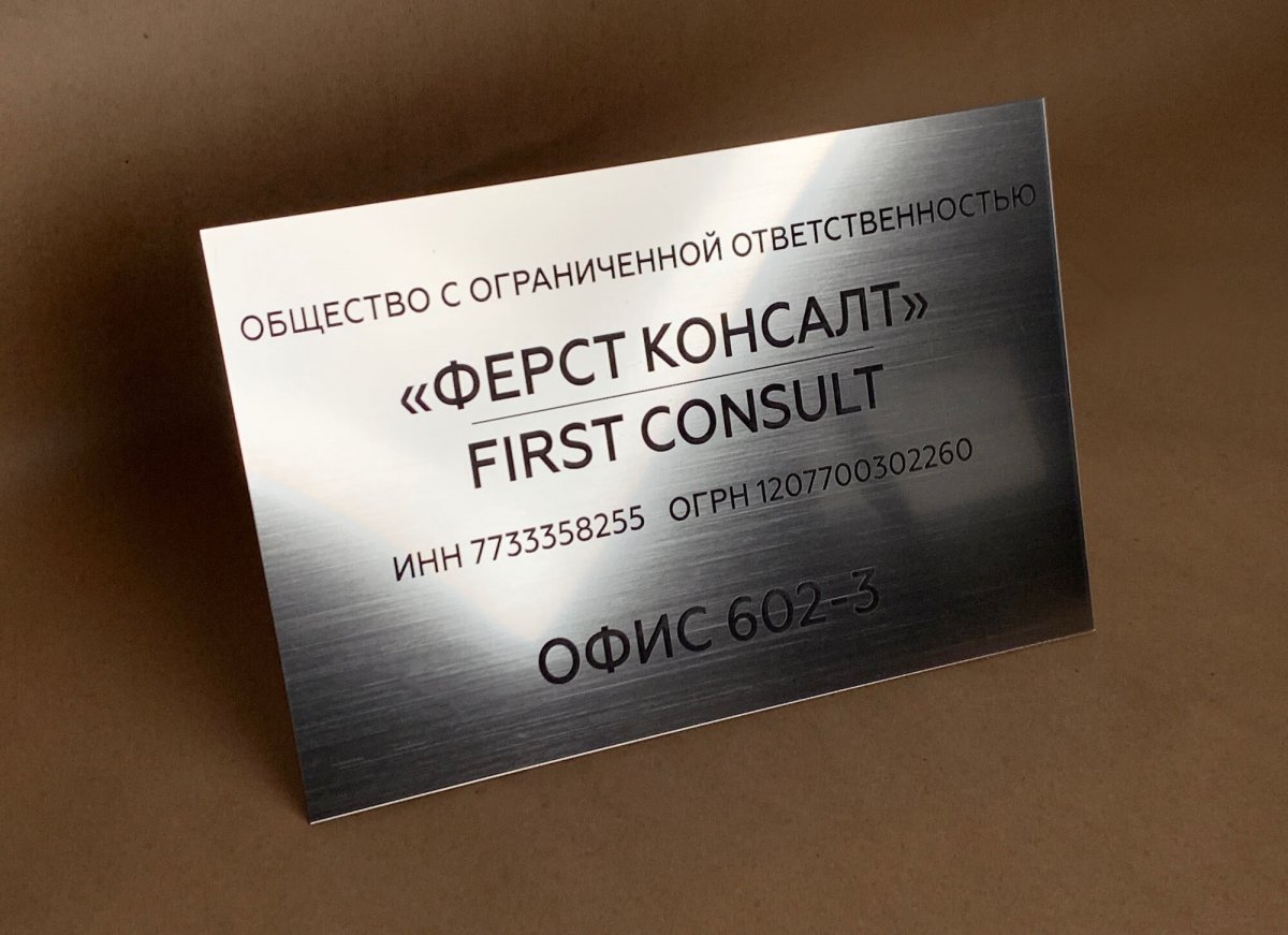 Табличка из металлизированного пластика – оригинальный и презентабельный вид.
